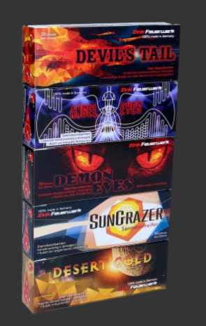 22’er Feuerwerks-Sortiment bestehend aus einer 10er-Rolle Color Banger Leuchtsternen, 4 Sternenbukettpatronen, 4 Angel Eyes und 4 Devils Tail Effektpatronen.